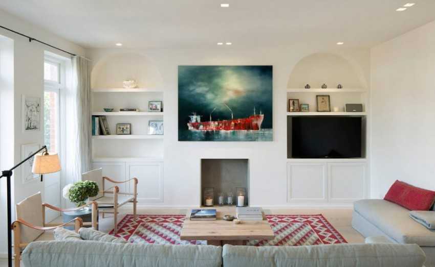 Телевизор можно поместить в импровизированную картинную раму, при этом она не должна выглядеть вычурно.