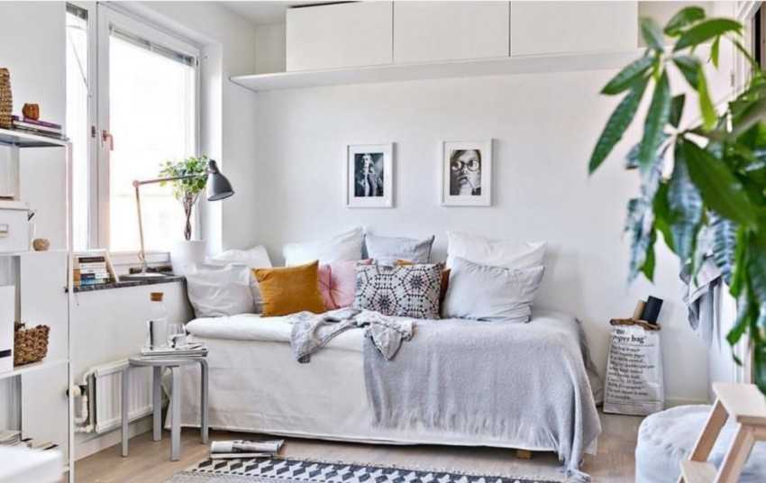 И последний вариант — это не зонировать гостиную-спальню вовсе. Да, такой способ тоже возможен, но только в том случае, если вы придерживаетесь минимализма, иначе вы рискуете создать беспорядочный интерьер с чересчур большим количеством декора и узоров. Здесь главное — простота, однотонность и светлые цвета.