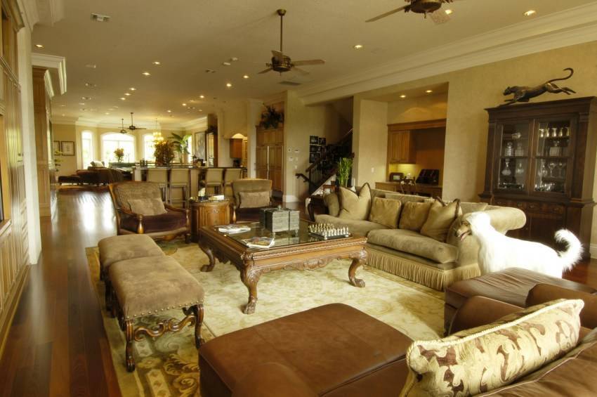 Так как гостиную невозможно представить без современной аппаратуры, используют приемы скрытого хранения – это позволит сохранить классическую атмосферу в интерьере