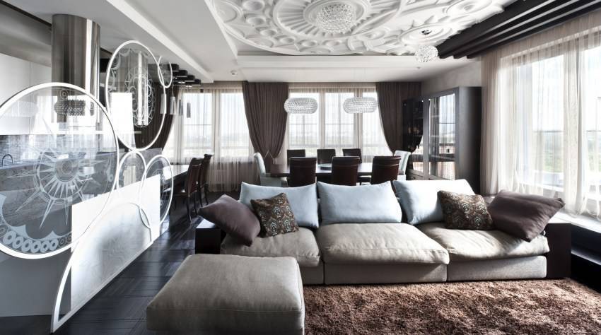 Взгляните на фото идей зонирования гостиной, и вы убедитесь, что из любой квартиры легко сделать полноценное помещение для отдыха, работы и проведения семейных мероприятий.