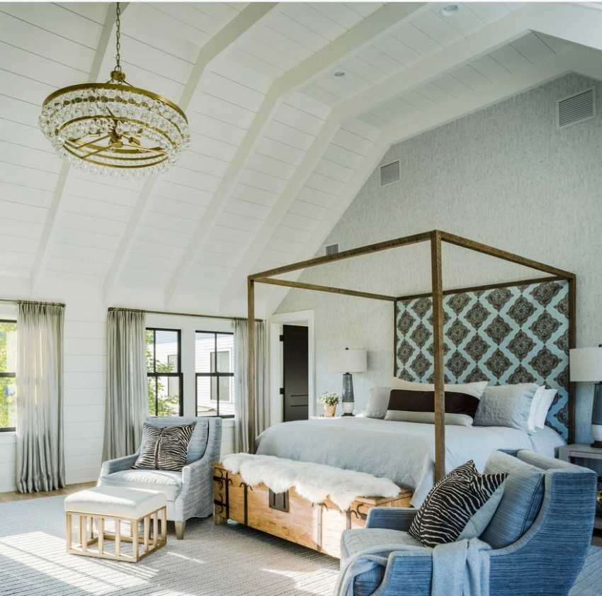 Отличительная черта стиля – наличие акцентной стены в изголовье кровати. Этот декоративный прием позволяет визуально выделить одну из зон
