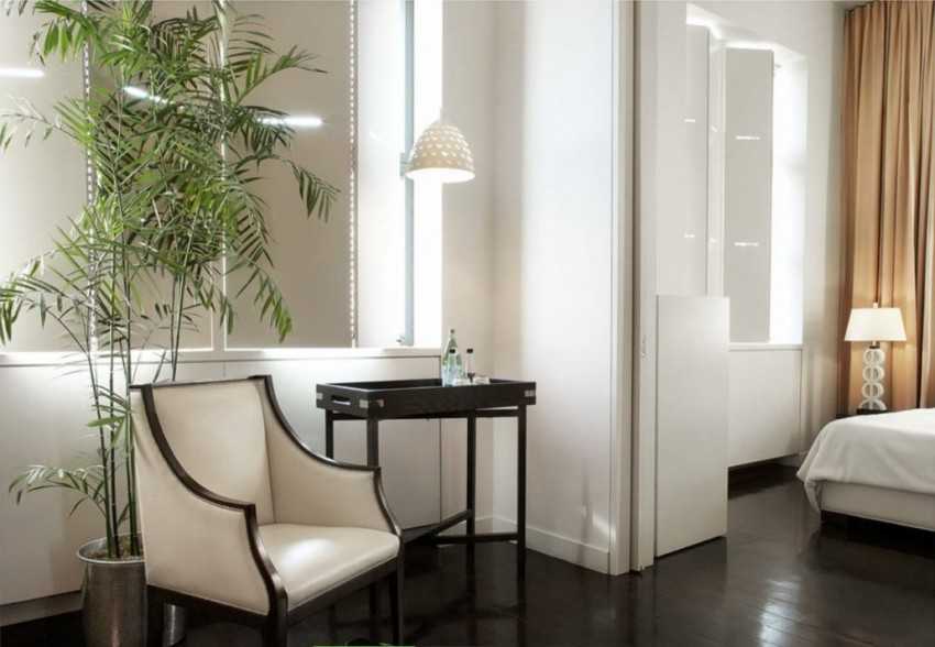 Для начала необходимо заглянуть в кошелек. Речь идет о бюджетном варианте исполнения, то в таком случае кровать отделяется благодаря спинкам кресел. Если правильно выбрать тон и фактуру материала двух кресел, то не создаться впечатление перегруженности пространства. Немаловажную роль здесь играет цвет и фактура стены, находящейся в зоне изголовья кровати. Необходимо сочетать цвета таким образом, чтобы визуальное пространство от кресел и до стены постепенно увеличивалось.