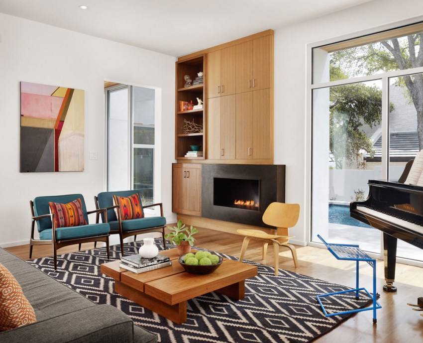 Все сильнее входит в моду и разделение комнаты с помощью освещения, где в каждой области имеется свой световой акцент, усиливающих атмосферу уюта и функциональности. Фальшивые колонны также актуальны, но требуют наличия свободного места, и лучше вместо них сделать на заказ нишу или встроенный шкаф.