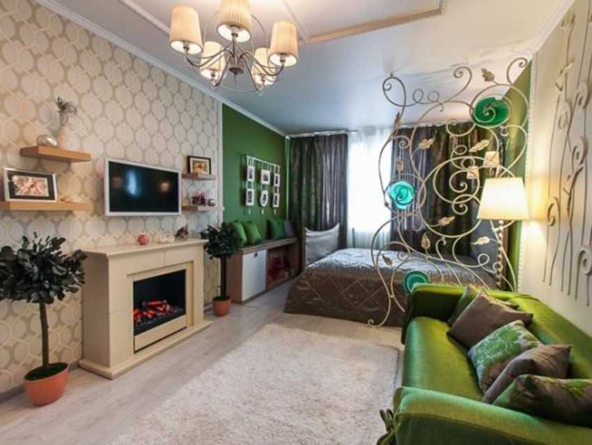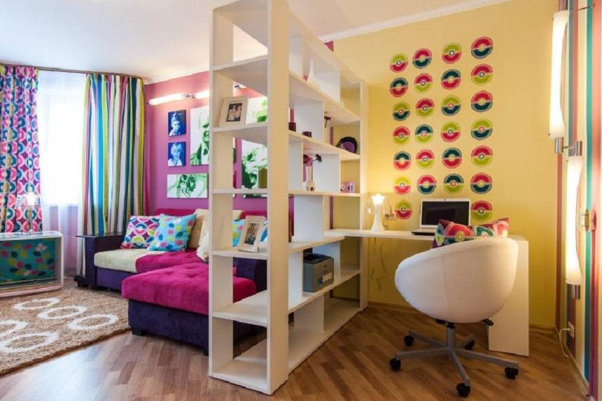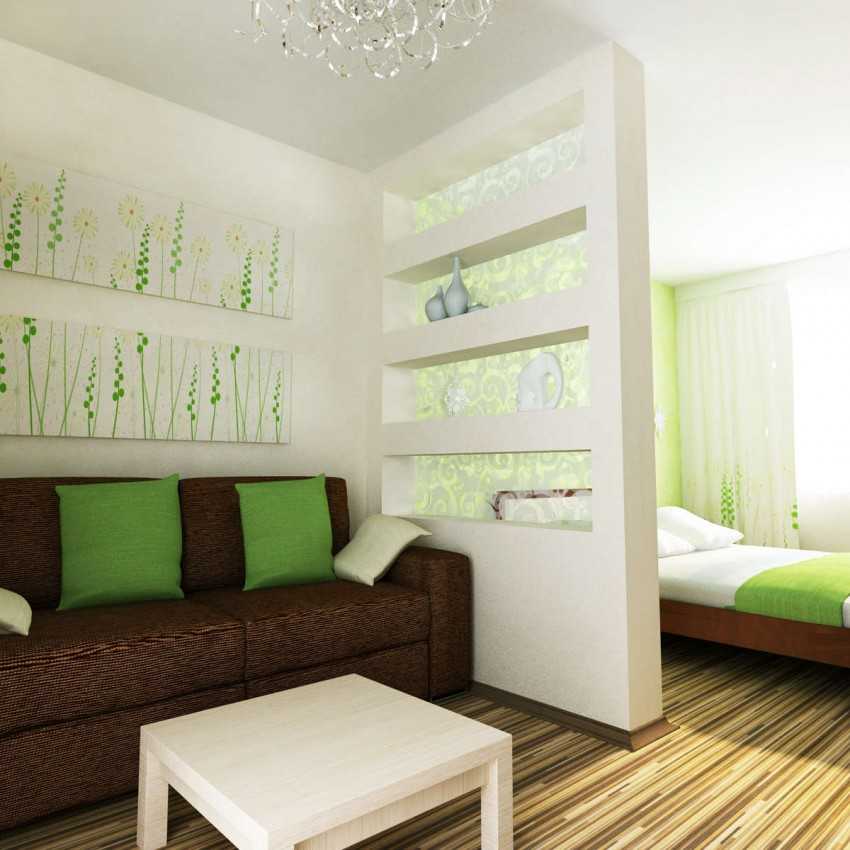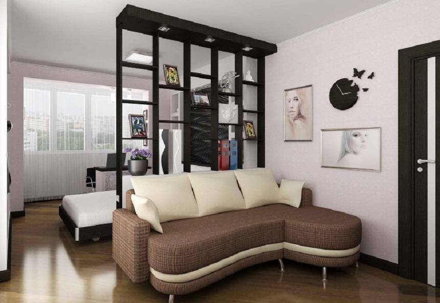 Если спальное место будет диваном, то подойдет цветовое зонирование, если кровать нужно будет дополнять интерьер перегородкой или ширмой.