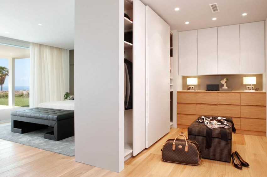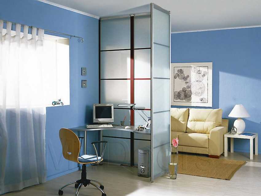 ДСП, МДФ. Основательные глухие перегородки приемлемы при отделении гардеробных комнат и зон хранения. Могут быть оснащены зеркалами, что визуально раздвинет пространство.