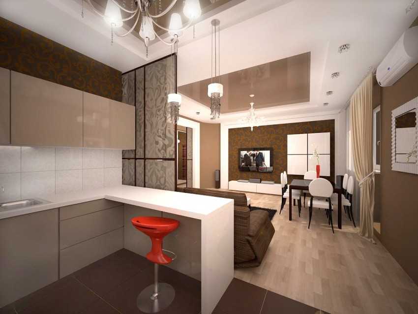 Идеей для зонирования кухни и гостиной может быть любой способ за исключением конечно ширм и текстильных изделий. В данном случае они не справятся со своей задачей. Неплохо будет смотреться вариант разграничения мебелью.