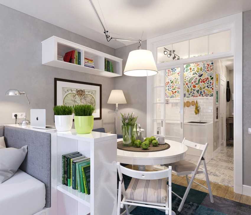 Предложенные варианты подходят для небольших комнат. Выделить полноценные зоны в комнатах малой площади проблематично без создания эффекта «кладовки». Визуальные способы не разрушают ощущение общности пространства при его функциональном разграничении.